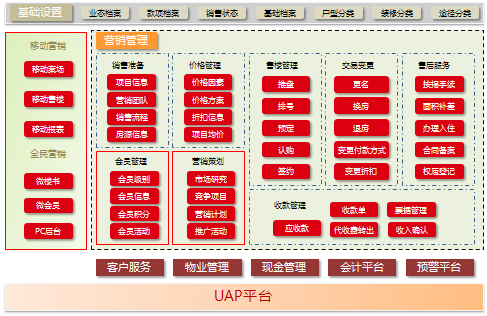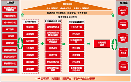 用友地產(chǎn)行業(yè)解決方案用友地產(chǎn)解決方案是用友專為地產(chǎn)企業(yè)開(kāi)發(fā)建設(shè)和商業(yè)經(jīng)營(yíng)提供的行業(yè)性全面信息化解決方案。 用友地產(chǎn)行業(yè)解決方案包括項(xiàng)目投資測(cè)算管理、項(xiàng)目盈利規(guī)劃管理項(xiàng)目成本管理、項(xiàng)目進(jìn)度管理、項(xiàng)目資金計(jì)劃管理、招標(biāo)采購(gòu)管理營(yíng)銷管理、客服管理、基礎(chǔ)物業(yè)管理、商業(yè)運(yùn)營(yíng)管理等基礎(chǔ)業(yè)務(wù)管理模塊;涉及地產(chǎn)企業(yè)集團(tuán)管控、項(xiàng)目全生命周期、客戶全生命周期所有管理體系及功能應(yīng)用,并結(jié)合商業(yè)智能、移動(dòng)辦公、移動(dòng)終端、電子商務(wù)等多種應(yīng)用模式,按照“戰(zhàn)略—預(yù)算—執(zhí)行”的管理思路,幫助地產(chǎn)企業(yè)管理者對(duì)土地、資金、人、產(chǎn)品以及各業(yè)務(wù)流程等項(xiàng)目運(yùn)營(yíng)數(shù)據(jù)進(jìn)行及時(shí)掌控和有效監(jiān)管,實(shí)現(xiàn)財(cái)務(wù)和業(yè)務(wù)信息管理一體化,消除信息孤島,滿足集團(tuán)化地產(chǎn)企業(yè)決策層、管理層和業(yè)務(wù)操作層的信息化需求,以高效的一體化平臺(tái)支撐企業(yè)采購(gòu)電子化、運(yùn)營(yíng)電商化、決策智能化。盈利規(guī)劃管理用友盈利規(guī)劃管理系統(tǒng)依托用友UAP平臺(tái),承接投資測(cè)算系統(tǒng),整合項(xiàng)目過(guò)程中成本、營(yíng)銷、財(cái)務(wù)系統(tǒng)數(shù)據(jù),實(shí)現(xiàn)對(duì)項(xiàng)目盈利的動(dòng)態(tài)跟蹤測(cè)算規(guī)劃、土增稅的測(cè)算及分析,其特點(diǎn)是: • 數(shù)據(jù)支持?jǐn)?shù)據(jù)決策分析:利用與其他系統(tǒng)的高度耦合性,為項(xiàng)目投資決策、動(dòng)態(tài)監(jiān)控提供充分有效的分析數(shù)據(jù)。• 一體化協(xié)同:利用平臺(tái)化公共數(shù)據(jù)管理,減少各業(yè)務(wù)系統(tǒng)間的耦合度;• 規(guī)范編報(bào)過(guò)程:統(tǒng)一模型樣式,固化數(shù)據(jù)邏輯,規(guī)范編報(bào)過(guò)程;• 過(guò)程跟蹤管理:實(shí)現(xiàn)對(duì)編報(bào)過(guò)程的整體跟蹤;• 數(shù)據(jù)同步共享:打通業(yè)務(wù)系統(tǒng)信息壁壘,實(shí)現(xiàn)財(cái)務(wù)與數(shù)據(jù)共享;項(xiàng)目進(jìn)度管理用友進(jìn)度管理系統(tǒng),以分級(jí)計(jì)劃管理體系為理論基礎(chǔ),幫助地產(chǎn)企業(yè)構(gòu)建集團(tuán)、區(qū)域公司、城市公司、項(xiàng)目的多層級(jí)、多樣化的計(jì)劃管理體系;通過(guò)系統(tǒng),集團(tuán)可對(duì)各下屬單位的計(jì)劃進(jìn)行分層級(jí)管理,明確計(jì)劃管理和控制的重點(diǎn),在集團(tuán)內(nèi)部形成計(jì)劃完成的統(tǒng)一標(biāo)準(zhǔn),從而實(shí)現(xiàn)跨區(qū)域多項(xiàng)目計(jì)劃管理模式的快速?gòu)?fù)制;通過(guò)成果管理體系和會(huì)議管理體系,將各項(xiàng)目開(kāi)發(fā)過(guò)程中產(chǎn)生的關(guān)鍵成果匯集到統(tǒng)一的知識(shí)庫(kù)中,實(shí)現(xiàn)全公司共享;集團(tuán)各層級(jí)負(fù)責(zé)人能通過(guò)系統(tǒng)及時(shí)掌握各項(xiàng)目節(jié)點(diǎn)的完成情況,并依此對(duì)員工進(jìn)行績(jī)效評(píng)估,并及時(shí)對(duì)計(jì)劃進(jìn)行調(diào)整和糾偏;集團(tuán)領(lǐng)導(dǎo)通過(guò)系統(tǒng)對(duì)項(xiàng)目設(shè)計(jì)、開(kāi)竣工、銷售、資金回籠等計(jì)劃的整體節(jié)奏把控,保障項(xiàng)目經(jīng)營(yíng)目標(biāo)達(dá)成。 項(xiàng)目成本管理成本管理,即“花費(fèi)最合適的錢,成就最合適的事”。企業(yè)管理者必須善于從經(jīng)營(yíng)的角度,而非僅僅是財(cái)務(wù)的角度,思考并理解“成本管理”思考“夠不夠”、“值不值”,既要做到著眼全面、流程嚴(yán)謹(jǐn)、控制嚴(yán)格、杜絕浪費(fèi),也要防止一味省錢、降低品質(zhì)。用友成本管理系統(tǒng)融合業(yè)內(nèi)眾多優(yōu)秀地產(chǎn)企業(yè)的成本管理精華,以目標(biāo)成本體系、動(dòng)態(tài)成本控制體系、成本責(zé)任和考核體系、后評(píng)估體系為理論基礎(chǔ),建立“目標(biāo)成本—資源規(guī)劃—招標(biāo)采購(gòu)—?jiǎng)討B(tài)成本—成本后評(píng)估—成本數(shù)據(jù)庫(kù)”的成本閉環(huán)管理。通過(guò)信息化平臺(tái),使各專業(yè)、各部門緊緊圍繞項(xiàng)目開(kāi)發(fā)計(jì)劃和成本管理目標(biāo),高效協(xié)同,密切配合,確保項(xiàng)目總體目標(biāo)的達(dá)成。采購(gòu)招標(biāo)管理用友招標(biāo)采購(gòu)管理系統(tǒng)由采購(gòu)計(jì)劃管理、招標(biāo)過(guò)程管理、供應(yīng)商管理網(wǎng)上招標(biāo)門戶等模塊組成。通過(guò)信息化手段,幫助企業(yè)建立集團(tuán)級(jí)的供應(yīng)商管理平臺(tái),實(shí)現(xiàn)供應(yīng)商的信息管理、認(rèn)證、供應(yīng)商的評(píng)估和黑名單機(jī)制,使供應(yīng)商管理更加科學(xué)、合理;通過(guò)對(duì)招標(biāo)過(guò)程的梳理,規(guī)范企業(yè)招標(biāo)制度和標(biāo)準(zhǔn),實(shí)現(xiàn)采購(gòu)過(guò)程的可視化,減少招標(biāo)采購(gòu)漏洞,集團(tuán)領(lǐng)導(dǎo)可以隨時(shí)獲知各項(xiàng)目招標(biāo)進(jìn)展